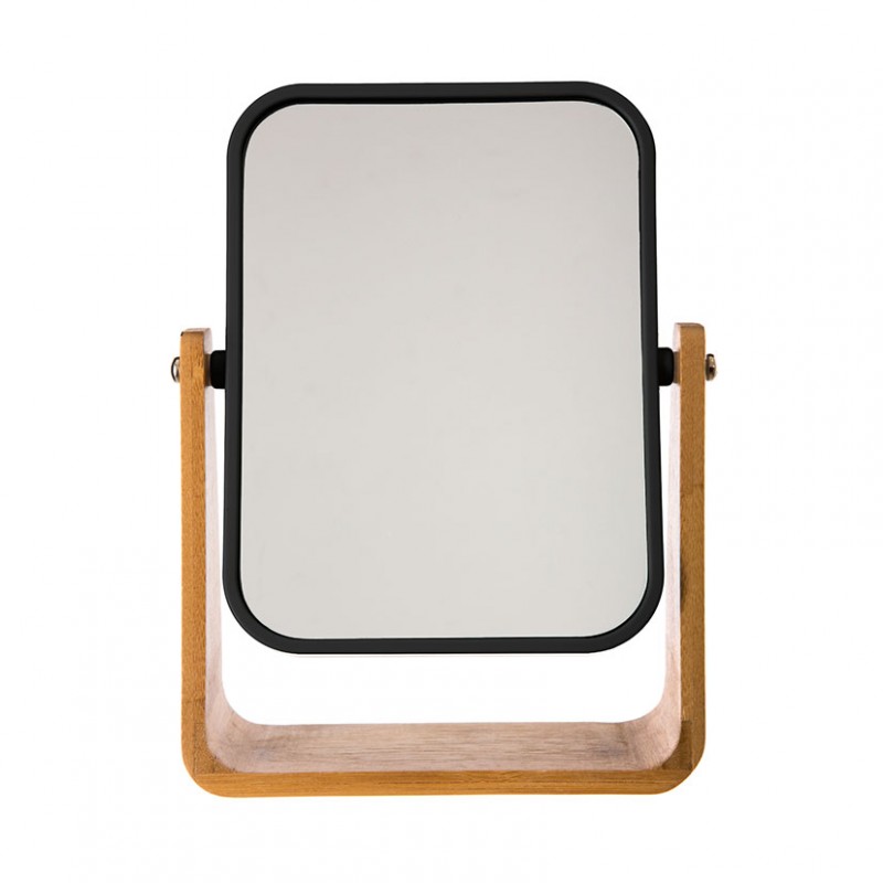 Serie Natureo. Espejo sobremesa negro / bambu
